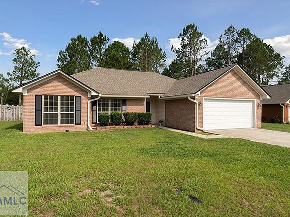 Welcome to this all brick 3 bedroom 2 bath ranch style home located close to Ft Stewart gates, schools and shopping areas. This home has been completely repainted inside and including garage walls and floor! Step into this charming entry foyer with coat closet, leading into the spacious Great Room featuring a cozy wood-burning fireplace, ceiling fan and door that opens onto expansive patio overlooking a privacy fenced backyard ideal for entertaining or relaxing outdoors. Wood Laminate flooring carries from greatroom, through dining room, and hallway. The kitchen is equipped with ceramic tile flooring, stainless steel appliances, newer stovetop range, and dishwasher. A deep stainless steel sink, plenty of cabinetry and recessed lighting. There is both a cozy breakfast nook, and a separate dining room . A second access door leads from the kitchen dining area to a covered patio - perfect for that morning coffee. Just off the kitchen area is a separate laundry room that leads to the 2 car garage. The owner's suite features a box tray ceiling, fan, and 2 walk in closets plus an additional closet and bath tub with ceramic tile surround , long single vanity and vinyl plank flooring. The guest bathroom offers a single vanity and tub/shower combo with updated flooring. additional updates include a new architectural shingle roof in 2021, 3 yr old HVAC system, Gutters . Set in a low-traffic neighborhood and move-in-ready, this home offers space, updates and location. Come see for yourself why this house isn't just a place to live -its a place to love!