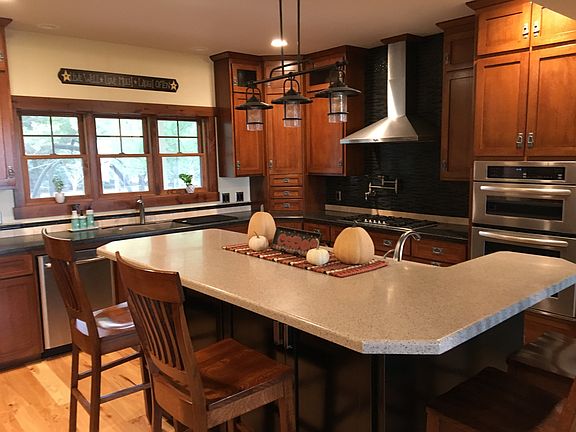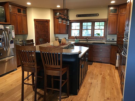 Paradise in the Pines Your 5,376 square-foot, five bedroom three and one half bath, heated three car attached garage dream home awaits you just minutes from Cresco, secluded on eight acres of wooded pines just Northwest of town. Whether you prefer to sit on the large front porch sipping a beverage after work, nestle in by the fireplace on a cold winter night, host large family gatherings on the holidays, or watch deer and pheasants out the large windows to the back yard, this is truly a private sanctuary for all. The home features a well-appointed kitchen with custom quarter-sawn oak cabinets, stainless steel appliances, a large island with bar sink and stools for gathering, and a spacious walk-in pantry. Other amenities include a large gas cooktop, double-wall convection ovens, and a pot filler. The open floor plan on the main level boasts hardwood knotty hickory floors and a majestic vaulted ceiling. Also on the main level is a large master bedroom with his and hers closets and a master bath with a walk-in tiled shower and a jet tub. Upstairs includes two bedrooms and a full bathroom with ample storage in a bonus room over the garage. The basement also has two bedrooms and a full bath, along with a large family room area with cabinets and sink. In addition, the property also includes a two-stall shed with workshop area. Attached to the shed is a living quarters with an open concept kitchen and living area, two bedrooms and a full bath. This would be the perfect set-up for someone who runs their own business or daycare and would like to keep work life separate from home life. The shed would also be a great rental opportunity or perhaps an in-law suite. Other amenities include geothermal heat, ICF wall basement, iron curtain on the water supply, and automatic standby generator. Both the basement and the garage feature in-floor heat, as well as the living quarters in the shed. Contact Shelly at 563-419-5582