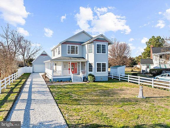 This beautiful 3-bedroom, 3-bathroom 2600 square foot home in charming Tilghman Island perfectly blends coastal charm and modern comfort. As you approach the home and step onto the front porch picture yourself enjoying a morning cup of coffee on the swing of your WRAP AROUND PORCH. Enter the home to the spacious 2-story foyer that flows to the open and bright main level with HARDWOOD FLOORS, beautiful CROWN MOLDING and FRESH PAINT throughout. The open floor plan is an entertainer's dream as you converse with all your guests while the sunset casts a warm glow through the windows. The dining area can accommodate a large table for gatherings, and the living room has a GAS FIREPLACE for more cozy nights. Kitchen offers STAINLESS STEEL appliances and GRANITE countertops, TILE BACKSPLASH and is rounded out with ample cabinet and counter space as well as a large BREAKFAST BAR. As a bonus there is a potential bedroom on the main level with BAY WINDOWS letting in tons of natural light, as well as a FULL BATHROOM with stall shower. The laundry is also located on the main level with BUILT-IN cabinets for storage. Exit the sliding doors in the living room to the LOW MAINTENANCE screened deck with retractable shades that continues out to the great sized deck and to the yard. Upstairs you will find the OWNERS SUITE complete with WATER VIEWS featuring a WALK-IN closet and spacious bathroom with TILE FLOORING, a dual vanity, SOAKING TUB, and stall shower. The TWO ADDITIONAL BEDROOMS on the second floor both have WALK-IN closets, and there is a hall bath with TILE FLOORING and a linen closet. Back outside is A TWO-CAR DETACHED GARAGE with FINISHED LOFT space with vinyl flooring, the potential uses for this space are endless. The expansive and FENCED .51 ACRE LOT also hosts a gravel FIRE PIT area and shed for storage. NO HOA/NO FLOOD ZONE. Take your kayaks out for a quick paddle around the island or walk down to your boat slip (available for rent) for an impromptu cruise. Described as “Unspoiled. Authentic. Sprinkled with unexpected pleasures.” Tilghman Island is charming and quaint. You are also just a hop, skip and boat ride (or car) to nearby St. Michaels and Easton where you can enjoy even more of the beautiful Eastern Shore that you get to call HOME. This is one you won't want to miss!!