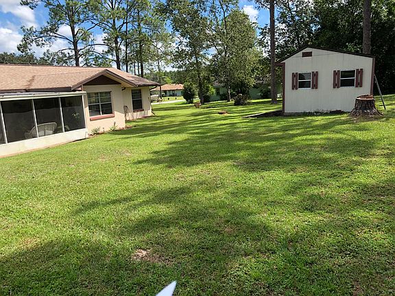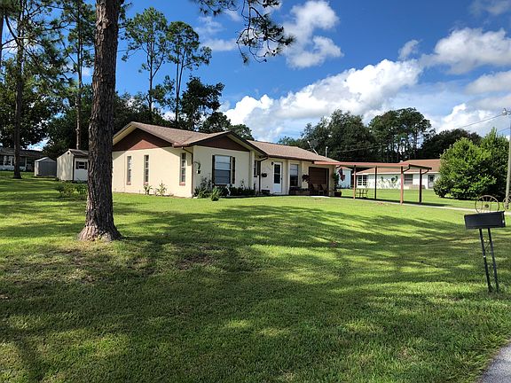 This very nice two bedroom, two bath, one car garage home is located in Rainbow Lakes Estates. Featuring new kitchen countertops and sink. Updated kitchen cabinets. New countertop & sink in master bath. Freshly painted throughout. Newer hot water tank and A/C. Roof replaced in 2011. Laminate flooring throughout the main living areas. It also comes with a den/sunroom and a nice screened in lanai overlooking the backyard. The extra lot leaves plenty of room for a garden area and lets not forget there is a large outbuilding with power for a workshop or storage. You don't want to miss this one!