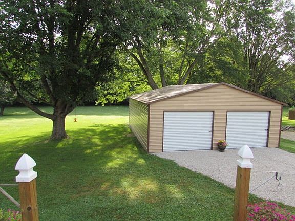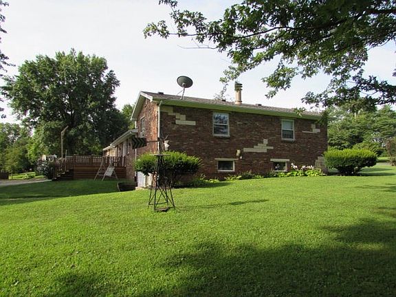 Situated on two acres with large trees and a creek running through the property. This is a peaceful setting on the outskirts of town with many updates including many new windows, doors, Patio doors, floor coverings updated kitchen & baths . Family room with Lopi wood burning stove, nice living room with fireplace open to dining room. New in 2014 oversized 2 car detached garage. One car attached garage, Cedar deck in 2010,new roof in 2014,Furnace approx. 8 years old. Appliances stay , shower in lower level walk out, Sq. ft. includes finished lower level. Must see to appreciate. Seller will leave 3 window air units also
