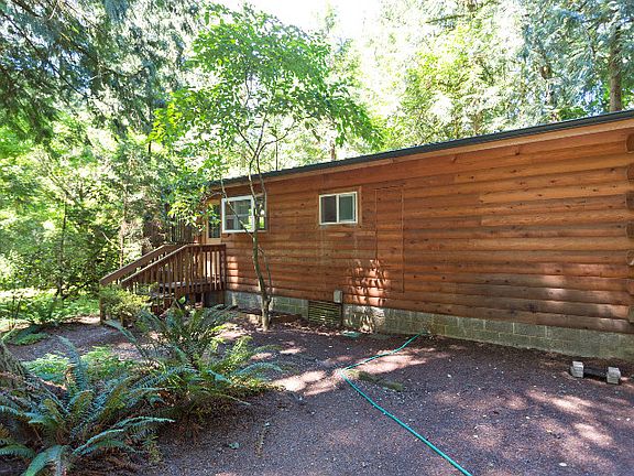 This wonderful piece of property is level with creek access for beauty and fun! Both clear open space and lush forest. Opportunities abound for recreation with pond, shop (with power), fruit trees, horseshoes, RV hook up, steps down to the creek and paved patio. Build your custom dream home with views, or enjoy this quaint cabin, complete with two decks and charming comfort. The opportunities are endless!