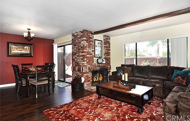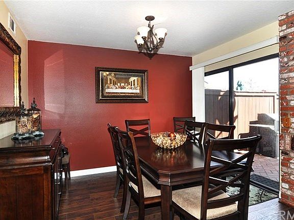 Tastefully upgraded 3 bedroom 2.5 bath condo in Smoketree has been updated throughout. The downstairs flooring has 18 inch travertine tiles in the entryway, kitchen and downstairs guest bathroom. The living room, dining room and hallway have recently been improved with scraped engineered hardwood giving the common area a modern but elegant look. There is a cozy brick fireplace in the living room. The dining room has a sliding glass door that opens to a large enclosed patio which is perfect for summer BBQs. The kitchen has been modernized with granite counters, recessed lighting and newer appliances. The downstairs guest bathroom has been renovated with a new vanity, sink, mirrors and fixtures. The upstairs has newer carpeting throughout the bedrooms and hallway. The upstairs guest bathroom has been boasts a new vanity, copper sink, mirrors, storage closet, toilet and 18 inch travertine tiles. The master bedroom is light and bright and the master bathroom has dual sinks along with upgraded tile flooring and fixtures. The entire interior has been painted and the bedrooms all have new window blinds. The double car attached garage has laundry hookups, has an extra storage loft. Just steps away from the pool, spa, tot lot and recreation room.