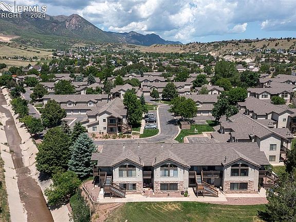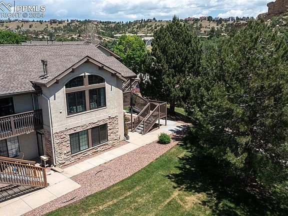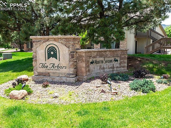 It does not get ANY better than this for TURN KEY totally updated, low maintenance west side living with VIEWS! This 2 bedroom, 2 bath end unit condo with 1 car attached garage in the highly coveted Arbors at Mountain Shadows exudes pride of ownership and truly stands out as the premier condo in the complex. Owner has done it all: new high end Anderson windows throughout; new top of the line Lennox HVAC; updated primary bath with beautiful, new walk-in shower; newer stainless steel appliances & brand new dishwasher; new fiberglass garage entry security door; new metal steps; Simplifire fireplace with blower. These improvements provide amazing energy efficiency & allow you to kiss goodbye high utilities. You will love the open floor plan, vaulted ceilings, abundance of natural light with mountain & foothill views out every window and the private covered deck with mountain views and a privacy sun screen. Kitchen is completely updated with beautiful cabinetry, pantry, counters and LVP flooring. The best mountain views are beheld from the comforts of your sofa in the spacious living room with a soaring ceiling as you enjoy your new fireplace and gaze out the large, new energy efficient Anderson windows. If fresh air beckons, step onto your covered, private deck and the views continue. Primary bedroom enjoys new windows, a fully updated attached bath & walk in closet. Second bedroom is spacious with new windows & a walk-in closet. Second full bath also is fully updated with tub/shower combo. Laundry space offers extra storage as does the hall linen closet. Carpeted stairs lead to your attached 1 car garage with new fiberglass insulated security door. Garage includes storage closet, garage door opener & exterior keypad. The Arbors boasts a pool, hot tub, fitness center, club house & green space. An outdoor enthusiast's dream location, the condo sits across from Ute Valley Park & in close proximity to Mountain Shadows & Blodgett Peak Open Spaces and Garden of the Gods.