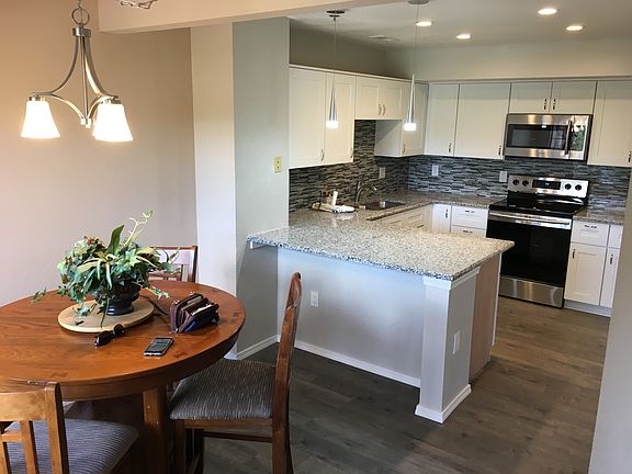 Picture perfect 1 bedroom- central air. Large living area with a gas fireplace, eating area and updated kitchen with granite counter tops. Brand new windows throughout! Cute patio in a peaceful neighborhood. Good size bedroom with two large closets. Attached 1 car garage - NO STAIRS Great community amenities with clubhouse, pool, fitness and spa.