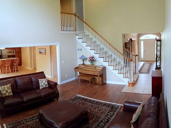 Welcome to Your Gorgeous Brick, 5,000+/- SF, 4 -5 Bedroom, 2.5 Bath, 3.5 Car Garage Home with Walkout Basement on 0.34 Acre in Desirable McCutchanville. Your kitchen features castled cabinetry with rope and crown molding, island bar, and brand new GRANITE counters. Your home has beautiful landscaping, brand new Pergo flooring, new paint, raised flower/vegetable garden, cabinets/workspace in the garage and extra tall overhead garage door for your larger SUVs. Barrel Ceiling Foyer greets you as you enter from the covered porch. On the left is your den/ study and to the right is your formal dining room. Just past the foyer is your great room with gas fireplace, new Pergo flooring, soaring cathedral ceiling, and ceiling fan. Off the great room is your serene master suite with tray ceiling, crown molding, ceiling fan, new Pergo flooring and private bath. Plenty of light enters the kitchen from the patio doors that lead out to your deck. Your kitchen comes complete with stainless steel appliances, large dining area, a plethora of cabinets with dovetail drawers, tile flooring, a gas cooktop in the island with bar seating, and granite counters. Your laundry room with shelving, hanging space, and washtub sink is off the hall that leads to your spacious 3.5 car garage with two overhead doors (one is extra tall for larger vehicles), man door, extra insulation in ceiling, and cabinets/workspace galore. Your guest half bath is off the kitchen hall to your formal dining room that has large windows and wonderful wainscoting. Across from the guest bathroom are the stairs leading to your 1788 SF walkout poured-concrete-walled basement which provides plenty of room for storage and recreation, and is rough-plumbed for a full bathroom. Walk out into your serene back yard to find a spacious aggregate patio, stairs leading up to the deck off of the kitchen, and swing set. Upstairs, you will find three additional bedrooms with ceiling fans, full bath with linen closet, and huge family room with two large closets. Home includes water softener and radon mitigation system. Deck and Aggregate were re-painted/sealed September 2018. Close to Brand New McCutchanville Elementary School, Community Park, and easy access to airport. See Updates List in Documents. Average Vectren $188.89. New water heater, July 2014.