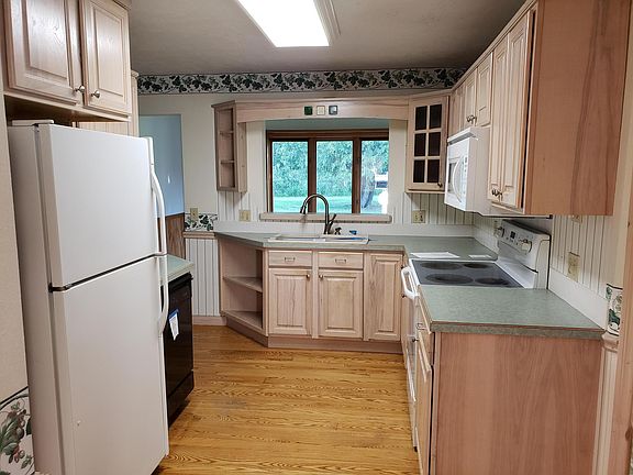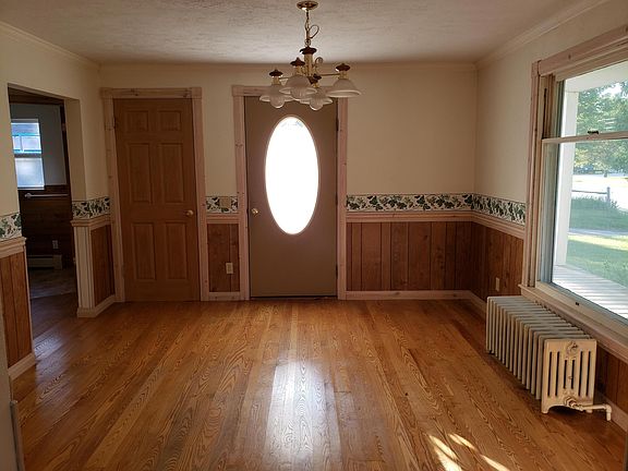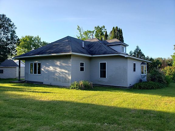 1.5 story home on a full basement offers two 1c dettached garages, large 1 acre yard with trees and plants outlining for privacy and covered country porch. Moving inside, you are welcomed by an updated kitchen with hickory cabinetry, some hardwood flooring, sun room, 3 bedrooms (1 down, 2 up), 2 bath (1 is shared with laundry), large living room with bay window, and reading nook upstairs.