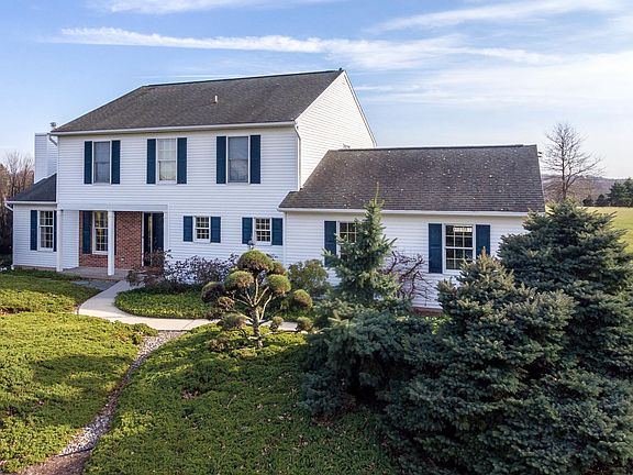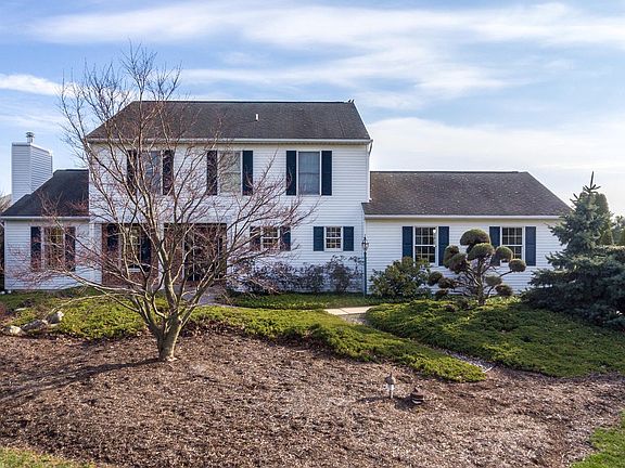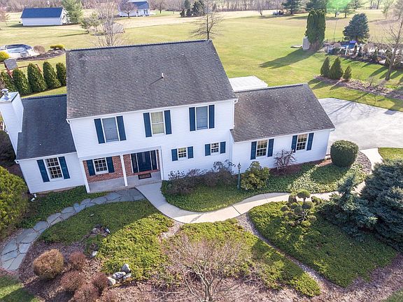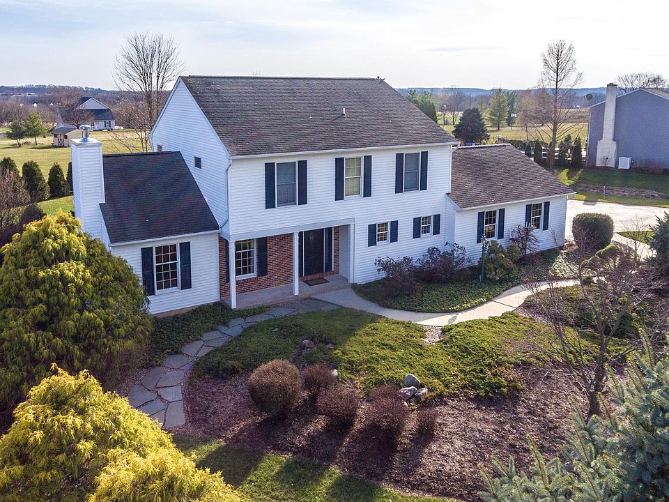 Enjoy distant views with southern exposure and beautiful sunsets in this custom built home within 3 miles of the Turnpike, shopping, and dining on 1.25 landscaped acres. This home is ready for gracious entertaining on the expansive, private, shaded patio, relaxing in the hot tub or just playing in the large yard. The covered porch and decorative front door with leaded glass sidelights welcome you into the home. A stately fireplace, large palladium window, cathedral ceiling, 15 light chandelier, custom window treatments, and hardwood floors lend timeless character to the home's formal living area where gatherings can move seamlessly between the L-shaped living room and dining room. The eat-in granite kitchen comes fully equipped with stainless steel appliances, custom birch cabinetry, double-oven, hidden built-in cutting board, sliding shelves and bay window that looks out to a beautiful view. The kitchen flows into a comfortable family room with a 3-panel glass door that opens to the patio. The upstairs bedrooms have lots of sunlight and are freshly painted. The master en-suite features Calcutta marble double sinks, polished nickel hardware by Grohe, frameless shower door and built-in cabinetry. This home radiates quality construction with high R-value walls and Anderson double hung windows. The whole house Generac generator lends peace of mind and the over-sized garage provides plenty of room for storage and two full sized cars. The pool room in the partially finished basement will bring hours of fun for the whole family. Click the video camera above to see the virtual tour!