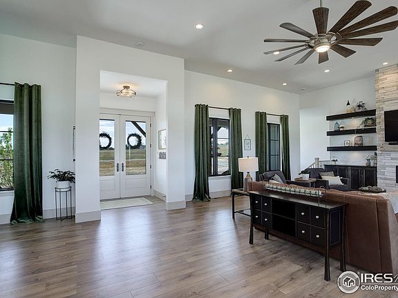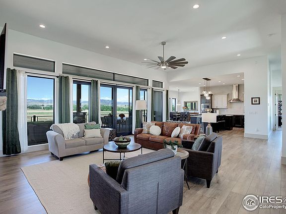 Experience the pinnacle of luxury design and tranquility in this completely private pastoral home nestled on 4.5 acres adjacent to a conservation easement with unbeatable views. Every inch of this newly built elegant home has been expertly curated to deliver an aesthetically captivating environment built to not only turn heads but also relax the soul. A welcoming front porch greets your arrival. Enter to high ceilings and light-filled picture windows framing WOW views of Longs Peak and the back range. The covered deck off the living area is perfect for indoor/outdoor living. The open entertainer's kitchen is made for the culinary enthusiast and features an induction stove (gas line available if preferred), dual ovens, and a huge walk-in pantry with an extra refrigerator. The secluded main level primary suite offers unparalleled serenity with a gas fireplace, window seat, unmatched views, and a spa-inspired 5-piece bath. Two main level bedrooms connect with a Jack & Jill bath. Walk-out lower-level amenities include a rec room, gym, & craft room. Two additional bedrooms on the lower level are spacious and bright and connect with a 3/4 bath. Loads of potential for the nearly untouched exterior. Adding an ADU or backyard amenities is possible! You will love enjoying nature in this tranquil space! This one-of-a-kind estate offers the ideal combination of luxury, function, and private relaxation.