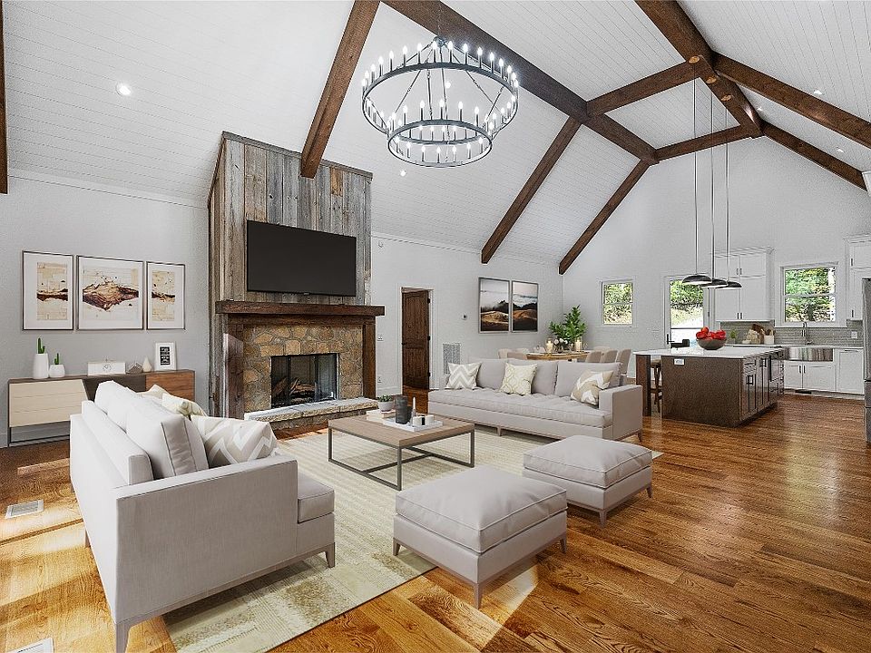 Step inside your dream home in the Glenville neighborhood of Sims Valley! This practically new, 3-bedroom residence has been beautifully renovated from top to bottom providing unbelievable value for this price point. Experience modern living at its finest with this exquisite new kitchen featuring stainless steel appliances, custom cabinetry, and elegant quartz countertops—perfect for culinary enthusiasts and entertaining guests. The open-concept layout floods the main living area with natural light, creating a warm and inviting atmosphere. This easy, one-level home is not just stylish but also functional, making it perfect for families or anyone looking for a comfortable and accessible living space. Step outside to embrace the beauty of over 2 acres of private outdoor space! Enjoy direct access to community trails and amenities, perfect for hiking, fishing, or leisurely strolls. Unwind by the home's charming stone fire pit, surrounded by tiered seating that invites gatherings with family and friends or head to the community clubhouse and pool for added fun. Only 16 minutes from the Cashiers crossroads and 7 minutes to Happs and The Local, this Sims Valley property offers both modern comfort and a serene outdoor retreat!