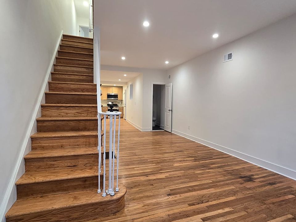 Forget the old Philly rentals. This is a fully renovated, gut-rehabbed 3 Bedroom, 1.5 Bathroom townhouse that feels like new construction! Step into modern luxury with gleaming hardwood floors, an open-concept living and dining space, and Central A/C to keep you cool. Your kitchen is a showstopper, featuring light wood cabinets, bright quartz counters, and a full suite of stainless steel appliances. No more trips to the laundromat. Enjoy the huge convenience of an in-unit washer and dryer right in your full basement. Located in the vibrant, highly walkable neighborhood, you're minutes from local favorite eateries, parks, and have quick access to the Broad Street Line. This pet-friendly home is an absolute must-see and ready for immediate move-in. Don't miss your chance. This perfect modern rowhome won't last long!