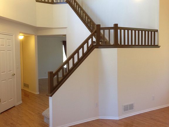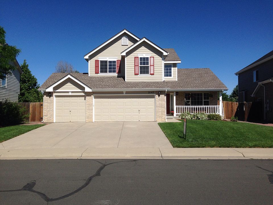 Welcome Home! Spacious 4 bed 2.5 bath with loads of natural light and an open staircase grand entrance! Beautiful and durable wood laminate covers the entire main floor and brand new carpet upstairs. Stainless steel appliances in the kitchen. Pet and Smoke Free. Freshly painted interior and exterior. Great backyard with deck and 'street lamp' lighting that leads to additional concrete patio area! Big 3 car garage and large driveway! Central A/C and Heat. Updated lighting including ceiling fans in most bedrooms. Beautifully landscaped yard with automatic sprinkler system. Basement is framed for future finish out! A short walk to the wonderful Great Plains Park which has a playground and cool water features for the kids! This wonderful home is located in the desirable Sterling Hills neighborhood, which has fast and easy access to Buckley AFB, DIA, DTC, Southlands Mall, I-225, E-470, shopping, movies, dining, events. Nothing to do, just move in!