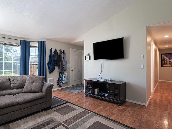 This welcoming single level home has been freshly painted on the exterior, including a new garage door, along the back are new windows and slider, plus electric shutters. In the backyard, enjoy the recently installed composite deck that leads you grass with automatic sprinklers (both front and back). Inside, is the open floor plan with a vaulted ceiling and roomy kitchen with a breakfast bar. Down the hall are the 3 bedrooms and 2 baths. A separate laundry room gives you access to the double car garage. Fully fenced front and back.