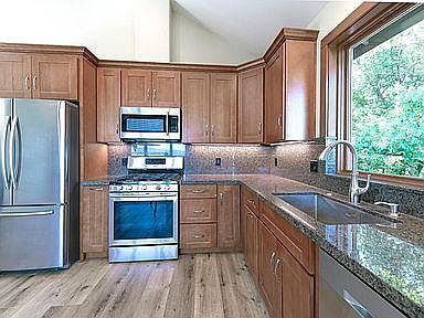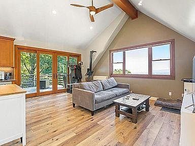 Exceptional mountain retreat home with beautiful scenic views, close to Highway 17, private gate access, and in a quiet location. Recently built, ~800 square feet, and in excellent condition. This home has the usual appliances plus Internet access, heating & air-conditioning, and an in-home washer/dryer. Quick access to many local great hikes and surfing. Friendly dogs welcome! Available to see with an appointment after you've submitted an application through Zillow. Tenant additionally pays landlord directly monthly fees for portion of shared electric service, for propane service used (metered), and a $125-$150/month (1-2 residents) combined utility fee for water, sewer, internet, & garbage services. $50/month additional rent for Sparky. This is a second-story home, underneath is a garage. The deposit is due at signing. No smoking. Lease ends June 30, 2026 with option to re-lease minimally one year at a time thereafter. Apply through Zillow.