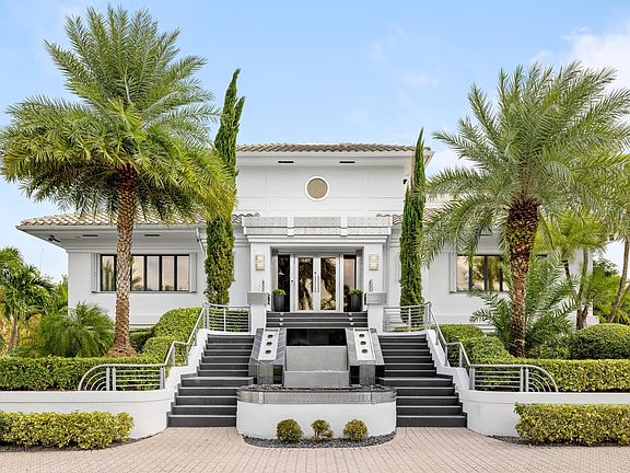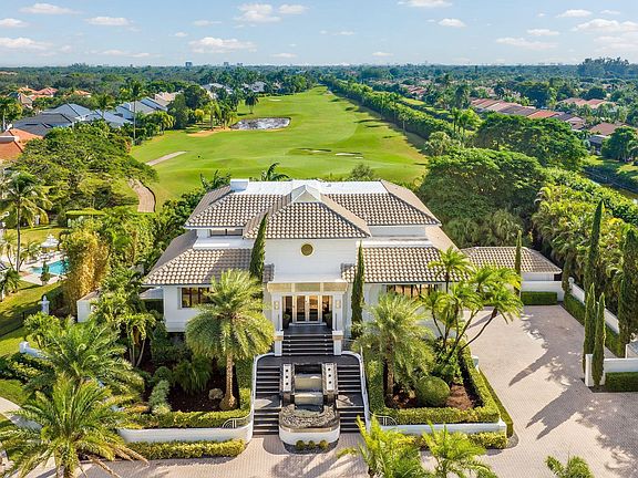 Situated on a coveted 0.81-acre double lot within the prestigious Boca Grove Country Club, this magnificent estate represents a private compound of unparalleled elegance. Comprising four individual structures, all seamlessly united under one single club membership, the property boasts a distinctive mid-century Italian modern motif that captivates upon arrival.Upon entering the copper and stainless steel ornamented main residence (7,641sf) located on the second floor, a grand spiral staircase elegantly connects all three levels of this thoughtfully designed construction. Designed for both extravagant entertaining and privacy, the property features an owner's primary suite on the entire third floor. SEE MORE.. Situated on a coveted 0.81-acre double lot within the prestigious Boca Grove Country Club, this magnificent estate represents a private compound of unparalleled elegance. Comprising four individual structures, all seamlessly united under one single club membership, the property boasts a distinctive mid-century Italian modern motif that captivates upon arrival. Upon entering the copper and stainless steel ornamented main residence (7,641sf) located on the second floor, a grand spiral staircase elegantly connects all three levels of this thoughtfully designed construction. Designed for both extravagant entertaining and privacy, the property features an owner's primary suite on the entire third floor. This suite includes a lavish master bathroom with a glass-encased shower, separate closets for him and her, and an exterior cantilevered logia providing breathtaking views of the meticulously manicured golf course fairway. The second floor hosts a modern European-styled eat-in kitchen, a grand formal dining room, a half bath, a relaxed family room, and a spectacularly appointed great room with a bar. The first "ground" floor accommodates two beautifully configured ensuite guest bedrooms, a gym, and a laundry-utility area with access to an attached oversized three-car finished garage, powered by a dedicated generator - first floor only. On the southwest side of the property stands a separate and private structure (2,281sf), featuring a handsomely spacious man-cave-library with a half bath on the first floor, including hidden storage rooms and an attached oversized two-car finished garage. The entire second floor is designed as a self-contained, well-appointed guest suite with a full kitchen, sitting area, three bedrooms, two full baths, and a convenient utility-laundry space. On the east side of the estate, a modernly devised resort-style pool, summer kitchen, separate spa, and an overall outdoor oasis were added in 2015, designed by the renowned South Florida architect Curtis Woodhouse. This luxurious and spacious area encompasses a free-standing contemporary glass-enclosed air-conditioned pool house (548sf) directly overlooking the pool, as well as a stand-alone cabana house (420sf) with one bedroom and a full bathroom, surrounded by lush tropical gardens. This property is the epitome of opulence and sophistication, offering a lifestyle of unparalleled luxury within a private and serene setting.