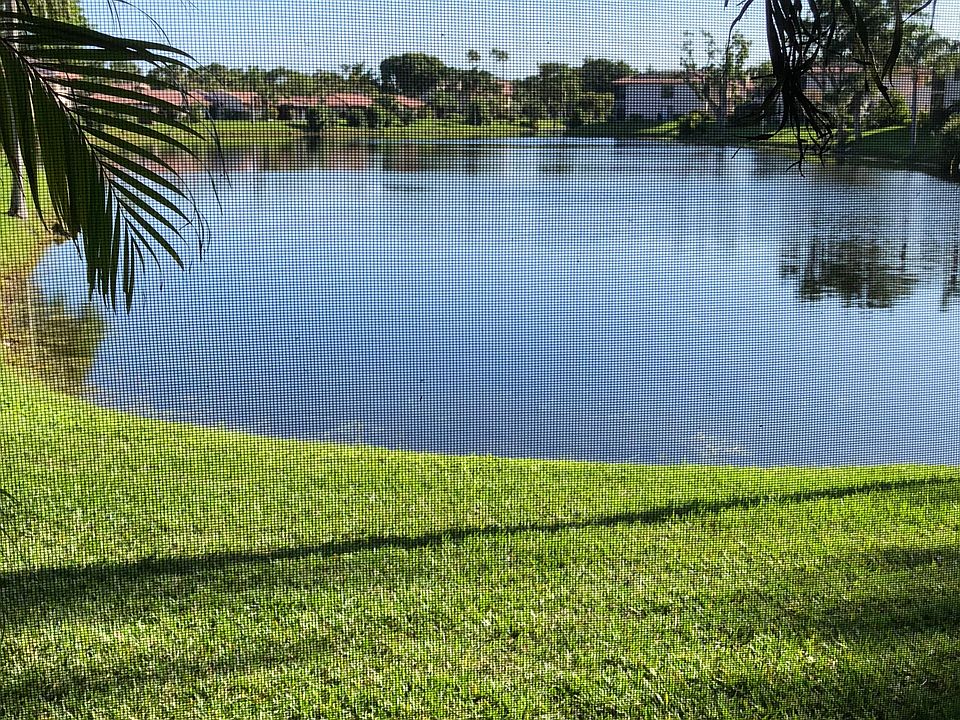 Step through the 1st floor private entrance of this quiet and luxurious 1426 SF 2-story 2 bedrooms 2 1/2 baths townhouse with magnificent private lake views from your first floor screened-in patio or second floor master suite lanai. Plenty of storage including 3 walk-in closets on the second floor as well as extra closets on the first floor. Large eat-in kitchen offers plenty of counter space & hidden washer/dryer cabinet. One assigned parking spot & guest parking. Vistas of Boca Lago has access to private clubhouse & pool. Boca Lago Country Club membership offering golf, tennis & more is available but not mandatory.
