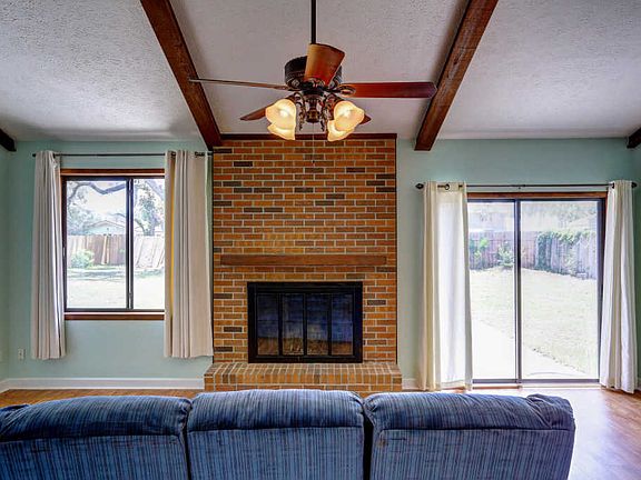 Move in ready 3 bedroom 2 bath with 2 car garage in the Kings Point area. Convenient to 23rd Street shopping and restaurants, this home has a newer kitchen with stainless steel appliances, granite countertops with a breakfast bar and large breakfast area giving many options for a busy lifestyle. There is easy access to outside for grilling or the garage to bring in the groceries. The living and dining are open to each other with views of the large backyard. A brick fireplace is focal and the beamed vaulted ceilings enlarge the room further. There are two extra bedrooms and a nice hall bathroom. The master is large and offers two separate vanities, walk in shower and large walk in closet. The exterior is newly painted and the roof is new. The wood double doors are a great focal poin