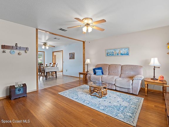 Well-maintained 3-bed, 2-bath Palm Bay POOL HOME with 1,504 sq ft. The interior features a large living room, a separate family room/office, quality custom woodwork, solid wood doors, and wood & tile floors throughout. The outdoor living space is a key feature, starting with a spacious 32x11 ft screened and tiled patio. This connects to the main enclosure with new screens & anti-corrosion hardware, surrounding the HUGE 30+ ft POOL (resurfaced 2025). Extend the swimming season with a solar heater and new solar blanket. Peace of mind comes with major updates: energy-efficient double-pane windows, Roof (2020), AC (2018, new coils 2025), new refrigerator & tankless water heater. Practical features include a garage workshop, attached shed, rain barrels, and easy-care landscaping. Washer and dryer are included. Located minutes from beaches, the Indian River, and Turkey Creek Sanctuary, with no HOA fees. Schedule your private showing today!