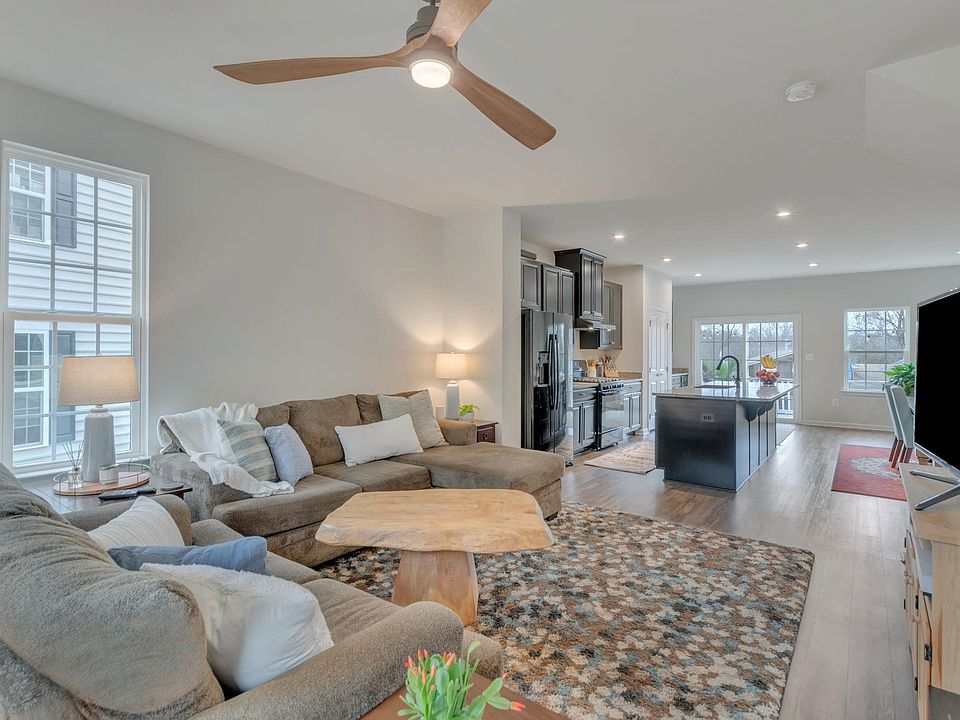 This is the largest town home floor plan offered in Riverwood. Like-new 3BR/2.5BA end unit town home w/ garage. HERS rated for energy efficiency. Main living area is an open layout w/ excellent flow between kitchen, dining room, living room & sunroom. Upgraded kitchen features extended cabinetry plus an oversized island w/ seating for 4, granite counters, large pantry, gas cooking & glass front cabinets. Light filled, spacious rec room on entry level steps out onto a covered rear patio & landscaped yard. Additional upgrades include: large deck, tray ceiling, LVP flooring, tiled shower w/ seat + soaking tub. Convenient location close to NGIC, DIA & Hollymead Town Center. Enjoy access to the neighborhood trail to the river. HOA includes lawn mowing & trash collection. Open Sunday 3/19 from 2-4.