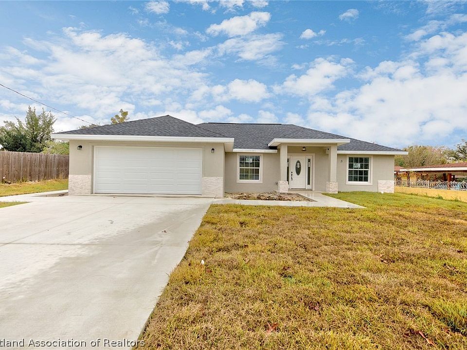 NEW CONSTRUCTION! Take a look at this stunning 3 bedroom, 2 bath home located in desirable Avon Park Lakes! Everything is brand new here! Walking distance from Lake Olivia! Pulling into the driveway, you will love the stone accents on the front of the home. This home boasts soaring vaulted ceilings, luxury vinyl plank flooring throughout, LED lighting, remote controlled ceiling fans, and much more! The kitchen is just beautiful with white soft close shaker cabinetry accented with modern gold hardware! White Quartz countertops, stainless steel appliances, tons of storage, and large island! Great split floor plan with the master en-suite boasting TWO HUGE walk-in closets and attached bathroom. The attached bathroom features quartz countertops, white cabinetry with gold hardware, and an amazing walk-in shower. The two guest bedrooms and guest bathroom are nestled on the other side of the home. Attached 2-car garage! Additional parcel (2141 N Larramore Rd) behind this home available for purchase as well making it nearly 1/2 acres! Come view this beauty today!
