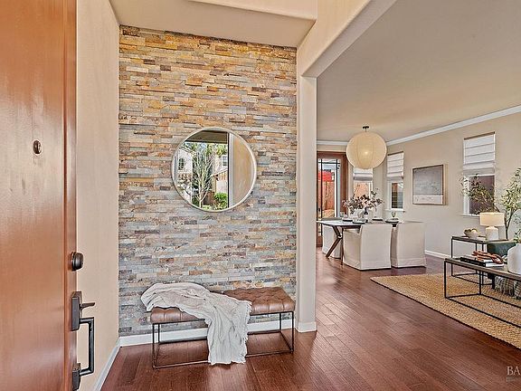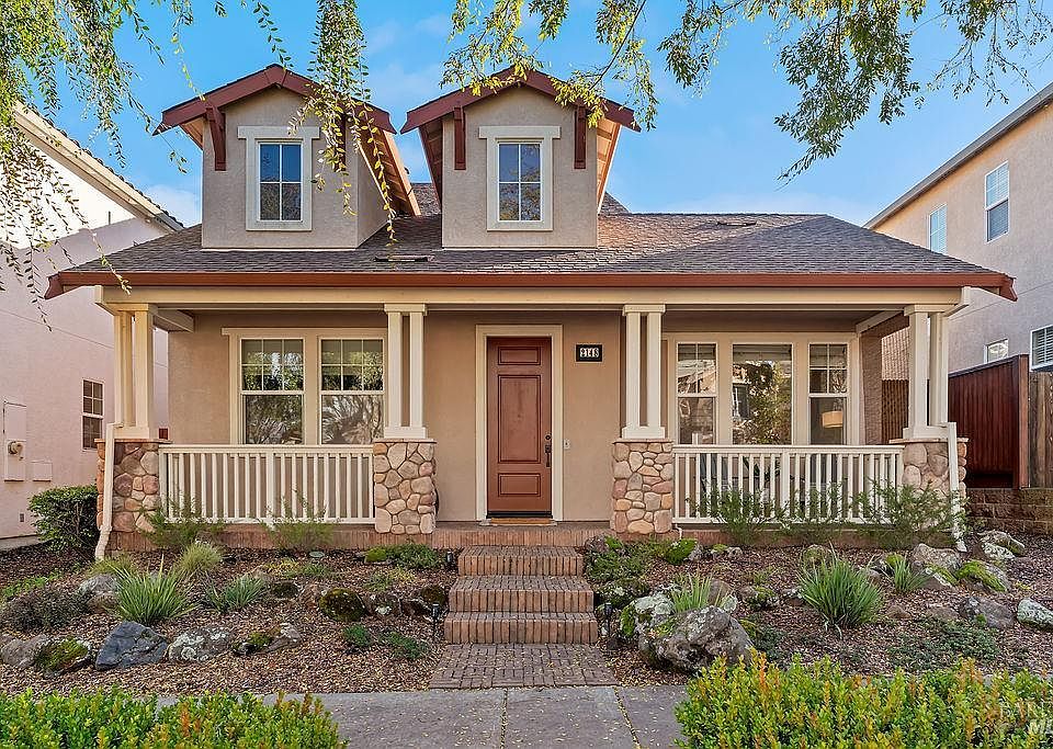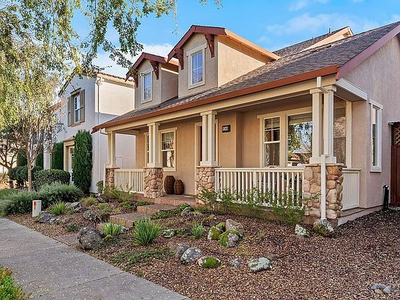 This home offers a blend of warmth, connection, and everyday comfort. It feels welcoming from the moment you arrive with an inviting paved front porch and beautifully landscaped front yard. Inside, a natural stone entry opens to a light-filled living room with warm hardwood floors and crown molding. Andersen French doors lead to a private, low-maintenance backyard featuring a flagstone patio with sail shades, and room to garden. The kitchen features a center island that's perfect for conversation while you're cooking, with a layout that flows easily into the main living spaces. A room on the main level is paired with a full bathroom. Upstairs, two en-suite bedrooms provide privacy and comfort, including a spacious primary suite with a soaking tub and dual-sink vanity. An upstairs laundry room and a generous garage add to the home's livability. Ragle Ranch, a Christopherson-built community, is known for its strong sense of community, with neighbors who look out for one another and regularly hold gatherings at nearby parks. Sidewalk-lined streets invite evening walks and casual conversations, creating a true neighborhood feel. Despite its tucked-away setting, the location is convenient, with easy access to Highway 12 and Highway 101, shopping, and Taylor Mountain Regional Park. This home offers comfort, connection, and convenience in one of Santa Rosa's most loved neighborhoods.