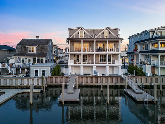 Introducing the most custom and high-end town home ever to hit the bay front market in Avalon & Stone Harbor. This unit features 5 bedrooms,4 full bathrooms and one-half bath, ready for summer 2023 enjoyment in a true park and walk location to everything Avalon has to offer. Situated along Princeton Harbor, this bay front retreat comes with a floating dock and two boat slips. The tucked away, slow, no wake harbor has so much to offer for the entire family, including kayaking, paddle boarding, swimming, crabbing and fishing. No expense was spared on the exterior of this home, with a mixture of 5-inch real cedar shake, accents of boral channel siding and board and batten. The roof is comprised of real cedar shakes, with a standing seam metal roofing system over the second and third floor decks to make all four exterior elevations of this bay front best-in-class. A total of 5 exterior decks with Ipe decking are finished off in mahogany V-Groove ceilings, coated with marine grade varnish. The railing system consists of cable rail capped by real mahogany, further expanding water views from both inside of the home and out. Sandblasted marble covers the grade level entry way leading out to the backyard oasis, and then continuing around the entire pool deck, leading out onto the bay. Inside, site-finished hardwood floors run throughout the entire home along with an extensive trim package including crown molding, shiplap and painted V-Groove on the ceilings in designated areas. The first floor consists of two bedrooms street-side, with one bedroom having a custom milled bunk bed. A hall bathroom services both bedrooms along with a dedicated laundry area. Overlooking the bay, a 3rd bedroom with en-suite bath includes a private deck spanning the entire unit. The second floor comprises of all entertaining space with shiplap walls, the ceiling trimmed out in V Groove with crown molding to top it off. A gourmet kitchen is outfitted with gorgeous custom cabinetry, a panel ready appliance package and magnificent ‘white pearl’ quartzite tops. The gentlemen’s bar, set off to the right of the kitchen, lends additional cabinetry and 2 beverage drawers. A powder room is also located on this floor, with a balcony off the front of the home to help create a cross-breeze during cool summer nights. The designated dining area is located just off the kitchen, with the family room bayside. Through a set of sliders, a covered deck, outlaid with Ipe decking, cable rail and mahogany cap finish off the second floor. The third floor consists of the fourth bedroom, with ensuite bathroom street-side, and the master bedroom with ensuite bath and dual sink vanity bay side. Through another set of sliders, a private deck, spanning the width of the unit gives you yet another view of the water. If you have been looking for bayfront living, and expect an incredible and completely custom home, look no further than this masterpiece you can call your own. Call today for a private showing and enjoy everything the bay has to offer.