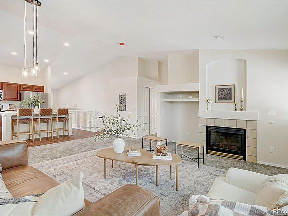 Step into this inviting home nestled in the Vista Ridge Golf Course community of Erie, where comfort meets convenience! As you enter, you're welcomed by a versatile front living room, perfect for a cozy relaxation area or even an at home office space. Journeying down the hallway, you'll find the heart of the home: an open main living area boasting vaulted ceilings and an abundance of natural light. The spacious kitchen features a sizable island, stainless steel appliances including a brand new refrigerator, range, and microwave, and ample dining space, seamlessly flowing into the family room adorned with vaulted ceilings and a charming gas fireplace. Retreat to the large primary bedroom, complete with a private en-suite bath and a generously sized walk-in closet. Two additional bedrooms, a full bath, and convenient laundry facilities with garage access complete the main floor. Downstairs, the basement offers a vast bonus room and an additional 3/4 bath, providing endless possibilities for recreation and entertainment. An unfinished storage area or workshop allows for even more possibilities. The main level boasts new flooring and paint, while the lower level underwent flooring and paint upgrades just a year ago, ensuring a fresh and modern look throughout the home. Step outside to the sunny deck space, perfect for enjoying Colorado's sunshine, and explore the fenced yard adorned with fruit trees including apricot, peaches, and grapevines. The Vista Ridge community offers an array of amenities including a pool, fitness center, clubhouse, tennis courts, and pickleball courts. With its proximity to surrounding senior centers, parks, bike trails, and school system, this home provides both comfort and convenience for every lifestyle. Plus, don't be surprised if you catch glimpses of local wildlife and charming owls in the area, adding to the appeal of this fantastic home!