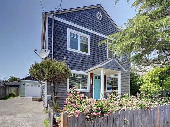 Quiet Southwest Seaside location.Superb remodel in 2006 with new detached garage (currently used as 4th bedroom and Gazebo. Comfortable deck and large rear yard. Interior just like new! Kitchen includes island eating and creative use of space. Formal dining plus welcoming living room and bath and laundry on main level.Three or four bedrooms depending on usage..Furnishings available separately. Highly successful vacation rental.