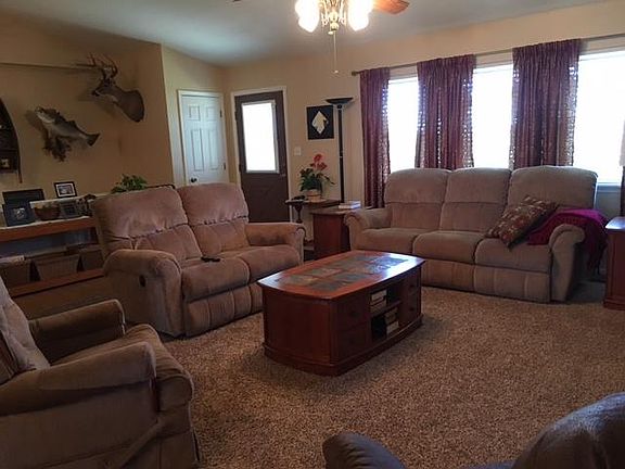 This home on 56 acres is just a mile from the city limits on a blacktop road. The house, built in 2003,has a full mostly finished basement w/ attached two-car garage.Also included on the front acreage is an insulated detached garage (30' X 40') and a large (40' X 50') barn. Most of the land is cleared, fenced and cross-fenced, w/ 3 ponds. This land produced 190 (1000#, 5X6) round bales of hay last year and has been used for cattle in the past. A small wooded section on the back of the property is home to several varieties of wildlife.The house has lots of room for storage with a walk-in closet in each of the three bedrooms. Rooms are large and perfect for entertaining family and friends. The screened back porch is a favorite spot to relax and watch the kids play in the large yard.