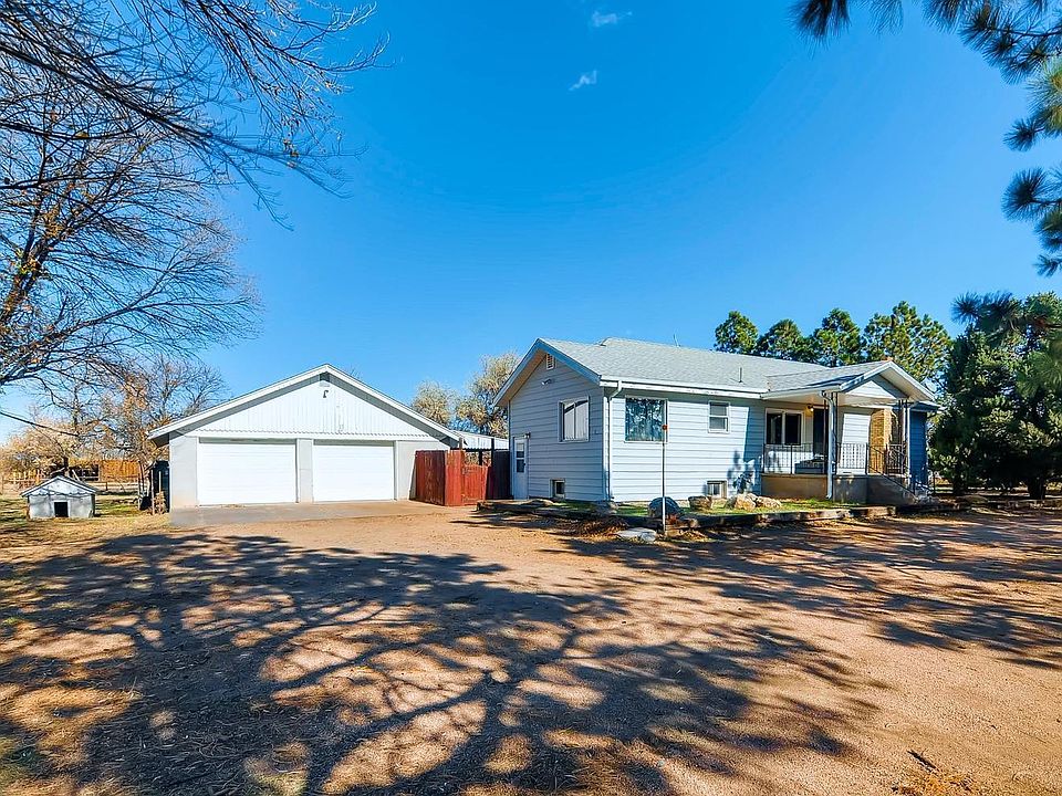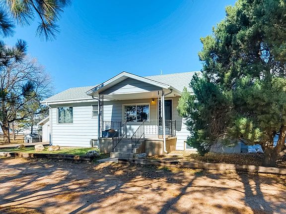 Charming 1960's style family estate farm house on nearly 10 acres surround by Ponderosa pine and deciduous trees. 5 bedroom, (2 non-conforming), 2 bath ranch with views of the entire front range! Partially updated kitchen with granite counters, updated tile bathroom, wood burning stove in family room with cove ceilings, newer vinyl windows, newer roof. Separate entrance to basement. Good home in need of more updating. Sold "As-Is." Over sized 2 car garage with loft, fenced yard, 3 outbuildings/ barns - 40' x 30' 3 stall foaling or calving barn with insulated milk room, loft, storage, 90' X 60' farm equipment/ storage barn, 120' x 40' storage barn with loft all complete with lights and power. 7.5 acres of fenced pasture. On well and septic, unincorporated Adams County, zoned A-3, hydrants, paddocks, room to roam and peace of mind!