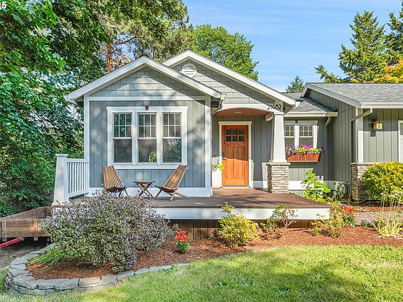 Beautifully Remodeled One Level in Tualatin, where customization abounds. Desirable floorplan with 1200 sqft, 3 bedrooms, 2baths, perched on a large cul-de-sac lot. You’ll be greeted with a charming wood front porch, & you’ll love the handcrafted front door constructed from reclaimed church pews. Enter a truly breathtaking living space. The living room is the heart of this home, featuring soaring vaulted, reclaimed wood ceilings with striking exposed beams. Natural light pours in through remote-controlled, solar-powered skylights that brighten the space & provide eco-friendly ventilation in the warmer months. Cozy up with the craftsman design mantle wood-burning fireplace with floating cabinetry that adds both function & modern flair. Just off the living room is a perfect flex space, complete with tile flooring & a circular ceiling—ideal for a den, a quiet reading nook, or a plant lover’s retreat. The open layout flows seamlessly into the stylish chef-inspired kitchen with floating shelves, custom blue cabinetry with pull-outs, designer gold hardware, gold-plated light fixtures, & under-cabinet lighting that meets sleek white quartz countertops & a modern tile backsplash. Stainless steel appliances,induction stove & commercial-grade range hood. Flows into the inviting spacious dining room area w/French doors opening to a large deck. Down the hall are two roomy bedrooms with carpet & closets & a shared guest bathroom. At the end of the hall is the primary suite with a spa-like bathroom featuring heated tile floors,skylight,vaulted wood ceilings,travertine tile & hand-molded cement countertops & a custom wood vanity. The fully fenced backyard offers mature landscaping, deck w/built-in benches, arbor w/swings, fire pit, & woodshed, making for easy outdoor fun & entertaining. Plus, extra space for parking toys, a deep driveway & 2-car garage complete this exceptional home. Its prime location is close to top-rated schools, parks, shopping, dining, & freeway access.