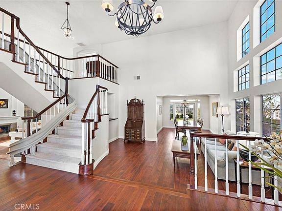 Call any day to see this beautiful home with breathtaking views for yourself. This beautifully maintained home features four spacious bedrooms, all with walk-in closets, and three luxurious bathrooms. The fourth bedroom is conveniently located downstairs with a full bath. As you step through the distinguished double door entry, you’ll be captivated by the cathedral ceilings and the light-filled living room and family room, boasting a fireplace and wet bar enhanced by an upgraded Fontaine sink. The spacious kitchen is a culinary delight, featuring granite counters, upscale appliances, a walk-in pantry, solarium windows & a decorative ceiling niche with recessed lighting. The formal dining room French doors flow effortlessly into a private outdoor retreat, complete with an aluminum patio cover, charming avocado tree and panoramic views to enjoy moments of tranquility where you can savor breathtaking sunrise and sunset vistas lighting up the surrounding hillsides. The primary bedroom serves as a tranquil retreat with a fireplace, and an elegant ensuite featuring two walk-in closets tile flooring, a travertine shower, frameless shower doors, and a separate oval tub with mosaic trim. There is even a small loft area outside of the primary bedroom for an additional reading or office retreat. The home is further enhanced by wood flooring, wood window sills, raised panel doors, vaulted ceilings, ceiling fans, baseboards, custom vanities, mirrors & lighting in bathrooms, Aqua Source sinks with Fontaine fixtures, a Bruno chairlift, new exterior paint, and new wrought iron fencing along the back of the yard. Revel in the open-plan design to enjoy luxury living in a home designed for both relaxation and entertaining. The Ridge at Trabuco Highlands offers a unique opportunity to live in a memorable location. Nestled at the base of the Saddleback mountains the community luxuries enhancing this prestigious home include award winning schools, hiking trails, a gated pool & spa, parks with sport courts & BBQ's, tot lots, and more. Close to the Wilderness Park, O'Neil Regional Park, Tijeras’s Creek Golf Course & the Rancho Santa Margarita Lake. This is a neighborhood designed for those who want their home to be special and removed from the hustle and bustle of everyday life. Some photos have been staged to show interior remodel options that could be completed in 4 weeks! Don't wait for an open house! You can see this home any day of the week!