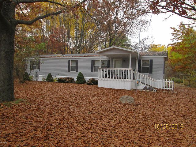 Exceptionally nice single-wide manufactured home on 2.29 partially wooded acres 3 miles from US131 onramp. Great hunting in the woods at the rear of the property. Pride of ownership is apparent! New 5'' well in 2012. New refrigerator in 2012 as well as new bath flooring and all light fixtures. New kithcen flooring in 2010. A fire pit and 8 X 10 storage shed with concrete floor in the scenic back yard. Plus, a 24 X 32 pole barn with new electrical panel in 2011 and an RV pad next to the barn with 220 Amp hookup. This would make a great starter home, retirement home or weekend get away!