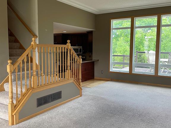 4 bed 4 bath 3300 sq ft 2 story home with walkout basement and 3 stall garage. MF features vaulted ceilings with fireplace, large kitchen with granite tops walking out to a two-tier large deck overlooking woods behind house. Three beds up, one being master with walk in closet and large bath with jetted tub and walk in shower. Lower level provides a great entertainment space. Custom bar area and theater space.