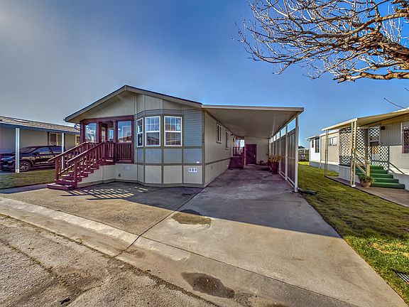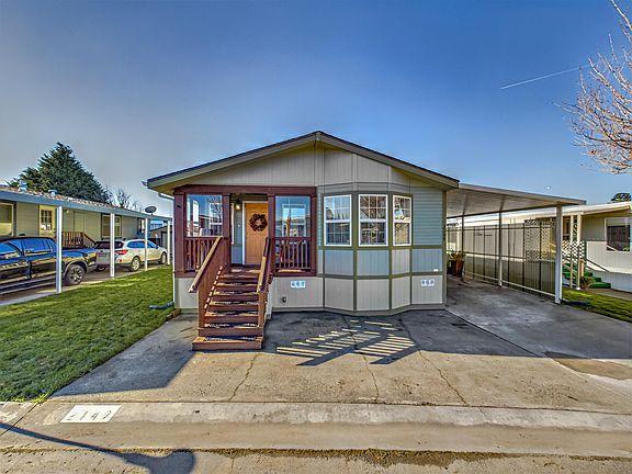 Welcome to Lazy J Ranch....a 55 or older Senior Park! This light and bright home has been meticulously maintained. Featuring 2 bedrooms and 2 full baths, well appointed kitchen with breakfast bar and newer appliances, formal dining, spacious living room with coffered/cathedral ceilings, built in bookshelves and storage, oversized primary suite offers a walk-in closet, built in storage and a generous En Suite with jacuzzi tub, walk-in shower and two separate vanities with sinks. Additional features include laundry room with storage and sink, covered front porch with swing, two sheds and carport, newer roof and much more! Call your favorite Realtor today for a private showing!