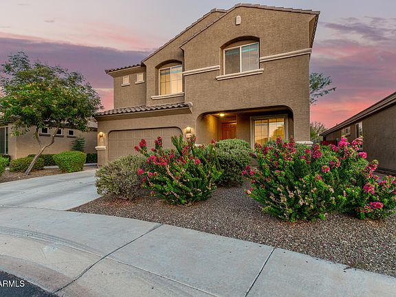 Move-in ready gem on a quiet cul-de-sac with Lookout Mountain views! Enjoy a landscaped yard, front patio, and 2-car garage. Inside features soaring ceilings, real hardwood floors downstairs, electric blinds, and a bright, open layout. The chef's kitchen boasts granite counters, soft-close shaker cabinets, SS appliances, pendant lighting, and a walk-in pantry. A double-door den is perfect for a home office. Upstairs offers a vaulted second living room. The spacious primary suite includes dual sinks and a walk-in closet. Enjoy added comfort with a whole-home water filtration system and an upgraded A/C system—ideal for Arizona's hard water and air quality. The backyard retreat includes a covered patio, pavers, pondless waterfall, and fire pit!