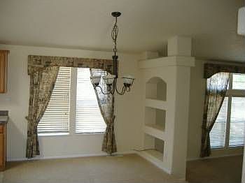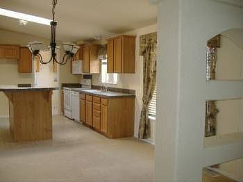 What a view from this three bedroom manufactured home on over an acre. The home sits high on this sloping lot giving it views for miles. The home features a Island Kitchen with a Front living room and sunken rear family room with built in TV nook. Split bedroom and large master with seperate garden tub and shower and walk in closets. This is a forclosure but it is in great shape.