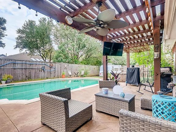 Come see this beautiful single story three bedroom home on an oversized lot in a cul de sac! This home has a beautiful private retreat in the backyard with a nice sized pool, She Shed, and a lot big enough for the kids and the dogs. This house boasts 2 Masters and bathroom for every bedroom! The over sized Master Suite has a sitting area and french doors that open to the backyard. Roof replaced in 2016. Pergola overlooking pool installed in 2017. RV Pad has 50 amp breaker for charging.