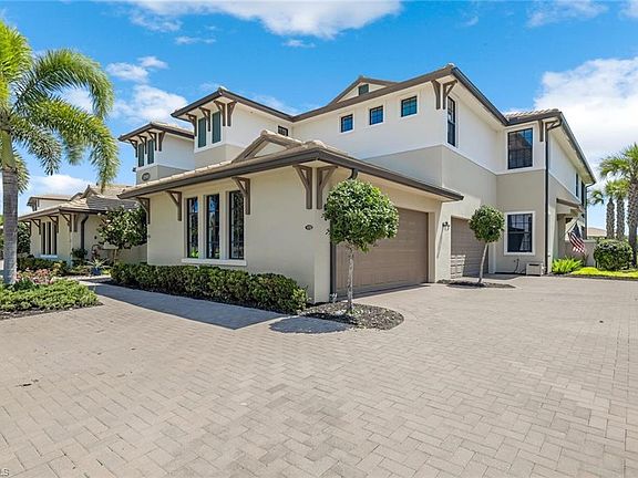 The wait is over for this rarely available, second floor, 3BR+DEN luxury coach home with PRIVATE ELEVATOR and two-car garage in Lamorada Naples - a low-density, amenity-packed community in North Naples. Built in 2018 by WCI, quality specifications abound, from solid, concrete block construction with impact-rated windows and doors, to high ceilings with architectural detailing, crown molding, quartz countertops, and neutral tile and luxury vinyl plank flooring throughout. With nearly 3,000 square feet of total living, the ease of a low-maintenance condominium lifestyle is blended with the spaciousness and privacy of a single-family home. The chic, open-concept floor plan is bathed in natural light with lots of windows and two sets of sliding glass doors in the great room leading to a large, east-facing lanai where gorgeous panoramic lake views set the stage for magnificent sunrises. A kitchen designed for entertaining features stainless appliances, natural gas cooking, a walk-in pantry, and an expansive island where family and friends will love to gather. The split-bedroom layout lends itself to part-time or full-time living with a gracious primary bedroom suite, with lanai access, in addition to two guest bedrooms, plus an ample size den/office/flex space that could convert to a fourth bedroom if needed. Frangipani Circle offers a tranquil setting within the community and is tucked away from busy roads. In walking distance is the show-stopping lifestyle center with on-site activity director who creates a robust calendar of social events, resort/lap pool, poolside bar and restaurant, culinary arts studio, fitness center, pickleball, tennis, bocce, even a movie theater! Lamorada Naples is a North Naples jewel, within minutes to a variety of dining and entertainment venues, as well as the famed sugar-sand beaches along the Gulf of Mexico.