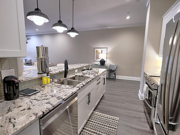 Luxury flat at the award-winning Village of WestClay in Carmel. The 3 bed/2 bath upscale flat is 1,715 square feet with over-sized windows that provide vast amounts of natural light throughout an open living concept layout for $2495/month. Beautiful plank flooring throughout, 10' tall ceilings with 8' tall doors in all areas and custom crown molding in the large living / kitchen area. Well-appointed gourmet kitchen boasts stylish tile back splash, upgraded stainless steel appliances, contemporary cabinetry, and a granite breakfast bar for casual dining. Beautiful matching granite throughout the kitchen, tech room, and bathrooms provide a neutral gray palette that will compliment any decor. Convenient tech room off of the kitchen provides a terrific separate space to work from home, pay bills, or do homework without being completely excluded. The master suite includes a tile shower, double sinks, wood framed mirror and huge walk-in closet. Two additional bedrooms feature large closet storage and lots of natural light. Separate laundry room includes full size washer/dryer. The flat provides a large private outdoor terrace facing the park for dining and relaxing and an attached garage with lots of storage. Each flat is also equipped with a convenient call-box doorbell and control access buzzer. Rent includes access to all the amazing immaculately maintained amenities in the Village of WestClay including 45 community parks, 3 pools, basketball and tennis courts, over 10 miles of walking paths with many ponds and fountains to name a few. Call this flat home today! To view virtual tour please click here. Tenant pays electric, water/sewer, and cable utilities. Pets OK with additional fees. Application fee is $40.