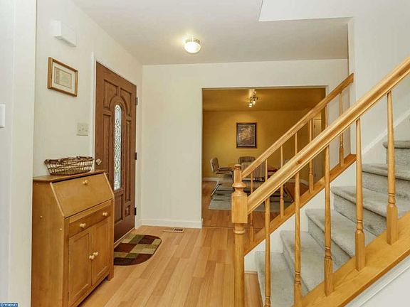 Well maintained 4 bedroom, 2.5 bathroom Colonial in Award Winning Central Bucks School District. This home has welcoming curb appeal with matured trees and plantings. Enter into the foyer which is flanked by the formal living room and formal dining room. The kitchen boasts quartz counters including a large island, stainless appliances and a built in dining table. The kitchen opens to the family room with cathedral ceiling. Upstairs find the master bedroom with a vaulted ceiling and 2 large closets. The master bathroom has been renovated with a large tiled shower, separate soaking tub and double sinks. Completing the second floor are 3 additional well sized bedrooms and another full bathroom. The basement is finished with Owens Corning Basement System with movable walls and a gas fireplace. There is plenty of basement storage space. Sliding doors lead from the kitchen to the large deck and hot tub overlooking the yard. HVAC replaced in 2015, Roof replaced in 2011 and Tankless Hot Water Heater installed in 2010.