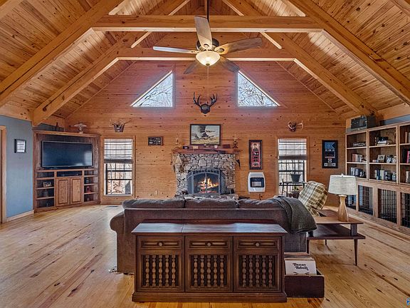 BOAZ- SARDIS SCHOOLS- 32 +/- ACRES- RENOVATED- WORKSHOP- AURORA LAKE ACCESS- Rustic 3BDRM/2BTH family home sitting privately on a wooded 32 +/- acres with access to the scenic Aurora Lake! Family room w/ a soaring ceiling accented w/ exposed beams & wood burning stone fireplace, all OPEN to the kitchen. Kitchen w/ ample cabinets & breakfast bar. True master suite w/ custom closet, HIS & HER vanity bowls, amazing shower & relaxing soak tub. 2nd level with bedroom, bath & 3rd BDRM or HOME OFFICE! Back porch overlooking the valley & amazing sunsets!24 x 30 Workshop plus lean-to! Be one of the largest land owners with access to Aurora Lake fishing, common area & pier! Sardis Schools. $349,900!