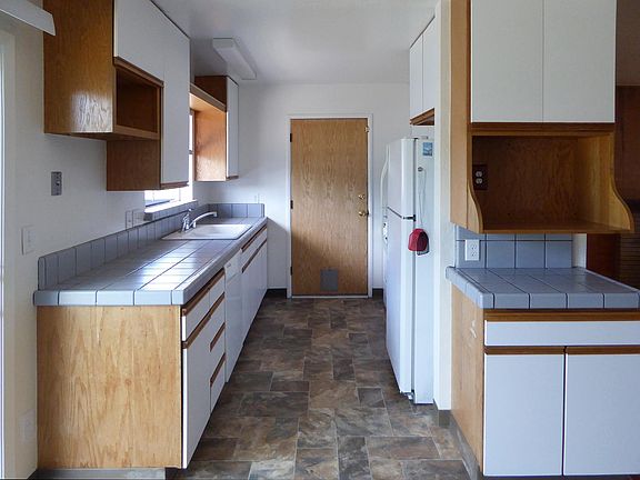 Three bedroom and two bathroom house with two-car attached garage. Extra large living room with wood stove, spacious kitchen with plenty of storage, all appliances including dishwasher/garbage disposal, two bedrooms with oversize closets, hall bathroom with tub shower, extra hallway linen closet, large master with oversize closet, spacious master bathroom with oversize stall shower and jacuzzi tub. New paint, window coverings and fixtures. Washer and dryer hook-ups in the garage. Large fully fenced back yard. Tenant pays all utilities. No smoking and no pets. Tenant pays all utilities. No smoking and no pets.