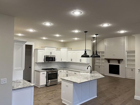 Brand New in Wild Horse Phase V! All brick/stone, approx 2669 sq ft ALL ON ONE level! 4 BR plan with split bedrooms and irrigated, sodded front/back yard. Open floor plan with elevated ceilings , covered patio, Hearth room with fireplace, great room with fireplace ,dining nook AND formal dining(or office) Abundance of white cabinetry with ORB light fixtures, hardware. Light shade of Hardwoods thru living areas,,dining,kit/din,hearth room,entryway and hallway. Shiplap fireplace in living room with built-in book shelves on ea side of fireplace. Both fireplaces are shiplap with beam style mantles. Granite thru out...The master bath offers tiled step in shower; Planned color are aesthetic white interior paint, dallas white granite, ORB hardware (all faucets are chrome) double bowl, white farm sink, white subway backsplash. Light, engineered wood floors thru kit/din/entry/living and formal din. Safari carpet in bedrooms, Tile in baths and laundry.! Huge Master Closet, with wooden shelving, including in the pantry and closets! Gas range