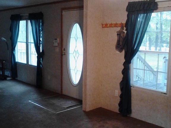 Spacious and private large manufactured home sitting on over 5 acres, includes pond. Huge garage, perfect for a race car, boat, RV or workshop. Includes a lift, and a half bath. Garage and House have a security system. Home has two decks, beautiful wild life and country living. There is additional storage as well. New carpet was put down in 2011. A home warranty is included.
