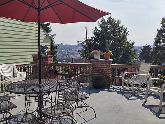 This house is larger than it looks. Enjoy and entertain your friends with the panoramic city views of downtown, the water and surrounding areas of Rolling Hills from your very own Back Yard Patio that measures 23x18. and also features a 17x9 Closed-In Porch just off of the patio that leads to the Eat-In-Kitchen. This home has 3 bedrooms, 2.5 baths, laundry room, a Tandem Style Garage large enough to fit 2 cars as well as parking in the driveway and in front of the house. Home Warranty included. Close to many Pittsburgh Attractions. Easy access to major highways to get around town.