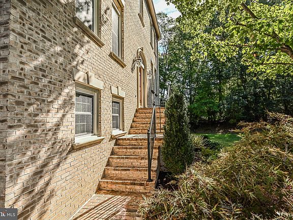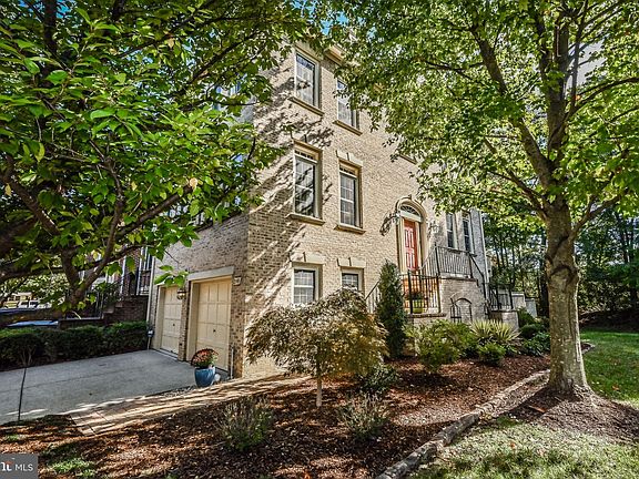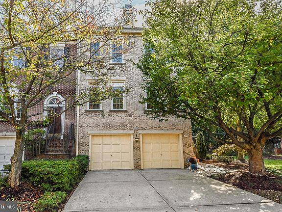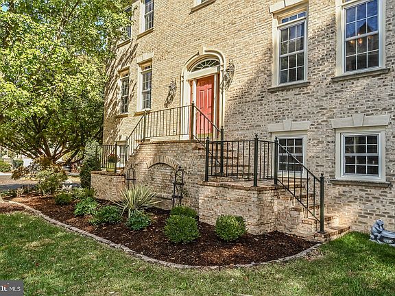 Courthouse Woods, an enclave of stately townhomes moments from Tysons, Mosaic, Metro, and commuter routes. In 1990, Stanley Martin built this all brick Newbury model backing to lush trees. The front elevation is appointed with architectural dormers, keystones, and brick front steps with an iron railing. Throughout the Main Level, solid sand-in place hardwood floors, transom windows, and 9-foot ceilings are featured. Crown molding, chair railing, shadow boxing, and pillars surround the expansive Living Room with additional sitting area. Natural light radiates into the formal Dining Room from the Windows & French doors, which provide access to the rear deck. The eat-in Kitchen boasts maple cabinetry, Ubatuba black granite countertop, square glass tile backsplash, and stainless-steel appliances. A wall of floor to ceiling windows with arched transoms and second glass door to rear composite deck illuminates the space with sunshine. Hardwood floors continue throughout the Upper Level and into the Primary Suite, finished with a double door entry, vaulted ceiling, and walk-in closet. Marble counters top the oversized double bowl vanity, and white tile surrounds the jetted jacuzzi tub & separate shower in the Primary Bath. Two Secondary Bedrooms, one with walk-in closet, share the Hall Bath, updated with marble countertop. The walkout Lower Level Recreation Room, centered by a brick wood-burning fireplace, includes full size windows, sliding glass door to rear patio, and laundry closet. A Full Bath, with marble countertops, and two car garage, with additional storage closet, complete the lower level. Watch the seasons unfold from the private composite main level deck overlooking lush trees. Fully fenced, the rear yard enjoys a paver patio and gate to the common area. Additional Photos & Property Video in Homevisit Virtual Tour.