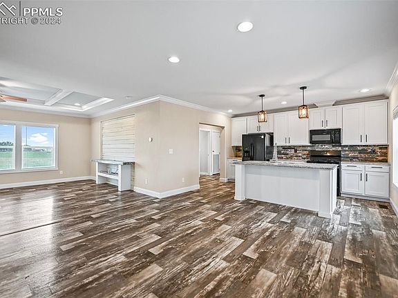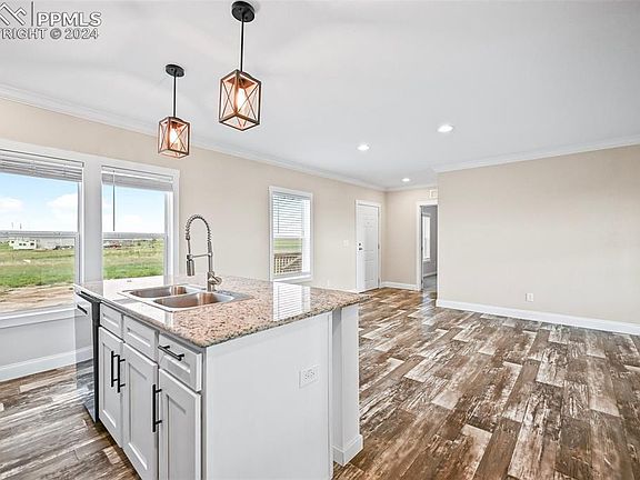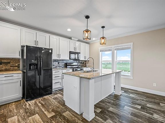This 3 bedroom, 2 bath, 1680 sq ft rancher sits on a 40 acre lot! This wonderful Tahoe floorplan includes: Large living room, bright open kitchen with lots of cabinet space, large island, pantry and stainless steel appliances (gas stove), Master bedroom with attached 5 piece bath with double sinks, soaking tub and walk-in wardrobe closet. Family Room, Laundry Room and two additional bedrooms complete the home. Central air and propane tank included. Phenomenal Pikes Peak/Mountain views, zoned for horses, domestic well. 3 stall building will stay with the property.