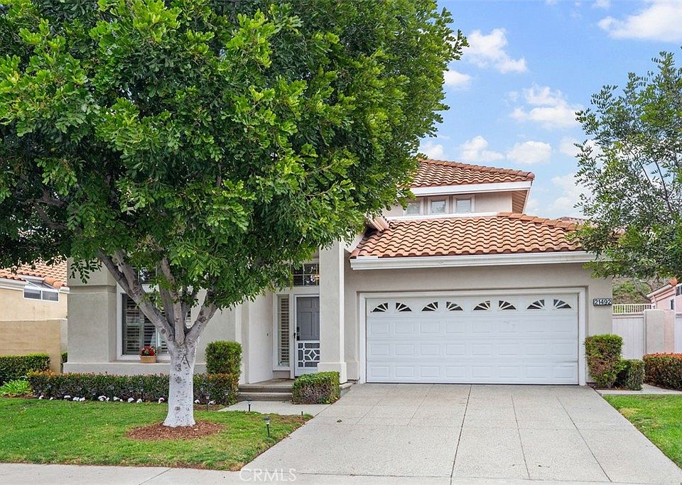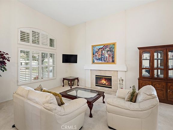 Near end of cul de sac location 3 bedroom, 3 full bath home in the popular 55+ community of Palmia! Grassy front yard and textured driveway. Offering 2 bedrooms & 2 full baths downstairs (including the master) 1 bedroom & full bath upstairs! Formal living/dining room with cathedral ceilings, plantation shutters and fireplace! Kitchen with tiled counters, island, recessed lights, lots of cabinetry, plenty of drawers and open to family room! Tiled floors in the family room and slider door to the private back yard! Main floor master with walk-in closet and its own direct slider door access to the rear yard! Master bath with new dual vanity, walk-in shower with support rails and dual head shower wand. Second main floor bedroom just across the hall from the master. Full second bath on the main level! Large third builder option bedroom upstairs CURRENTLY USED as a LOFT makes the perfect den or hobby room! Full bath upstairs too with a walk-in closet! Main floor individual laundry room! Extra storage cabinets in the garage! Easy maintenance private yard backs to the slope! Community includes golf, pool, clubhouse, tennis, shuffleboard, volleyball, paddle court, horseshoes AND Lake Mission Viejo membership!