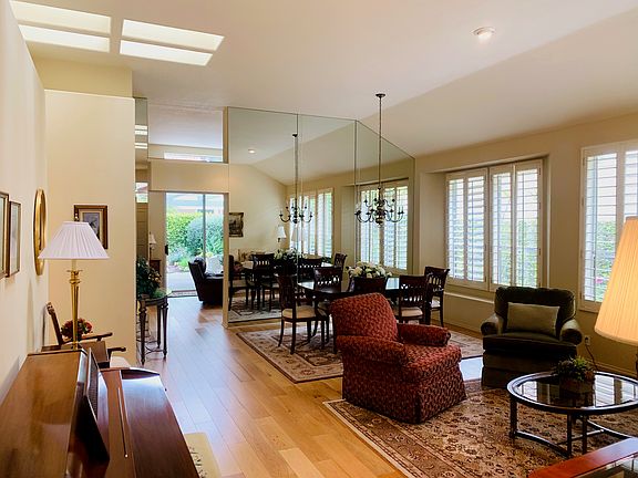 Lovely light and bright single story home located on a quiet cul-de-sac in a wonderful 55+ community. A quality built home in the Terraces section of Palmia. This immaculate home has been refurbished and meticulously maintained. Recently installed engineered hardwood floors, recent new forced air heater and all new ducting. Rear patio with Alumawood patio cover with lighting also recently installed. Epoxy pipe coating. Termite contract. Newer oven and built-in microwave, quartz countertop in kitchen. Manuals and documentation available to new buyer. Kitchen looks out to cozy family room with a fireplace. Spacious master with walk-in closet. Separate dining room and living room. Inside laundry. Palmia is an active 55+ community with community center, pool, fitness room, tennis courts, shuffleboard, short hole golf course and more. Many activities for the active senior with groups and clubs available to join within the community.